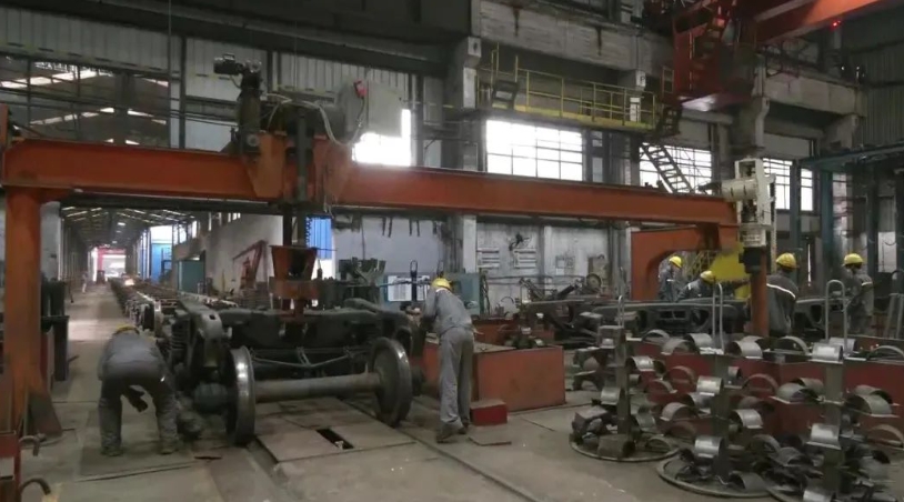 一組組貨車輪被自動送入熒光磁粉探傷機(jī)里“體檢”,機(jī)械臂有條不紊地工作,生產(chǎn)熱情持續(xù)高漲,以每8分鐘一輛車的生產(chǎn)節(jié)拍奏響了中車貴陽“趕工曲”。貴陽綜保區(qū)的中車貴陽車輛有限公司作為西南地區(qū)唯一的鐵路貨車修理基地,也是全國最大的貨車修理工廠之一,2023年的生產(chǎn)產(chǎn)值和產(chǎn)量均創(chuàng)下了歷史新高。